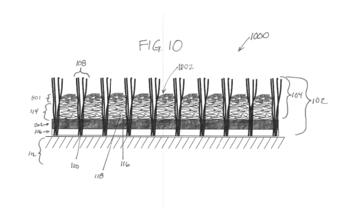 de arena. El espesor de un sistema de relleno es tal que solo una pequeña proporción de las fibras de hierba sobrepasan la altura de la capa de relleno. La estructura completa se asemeja así a la hierba natural recién cortada.